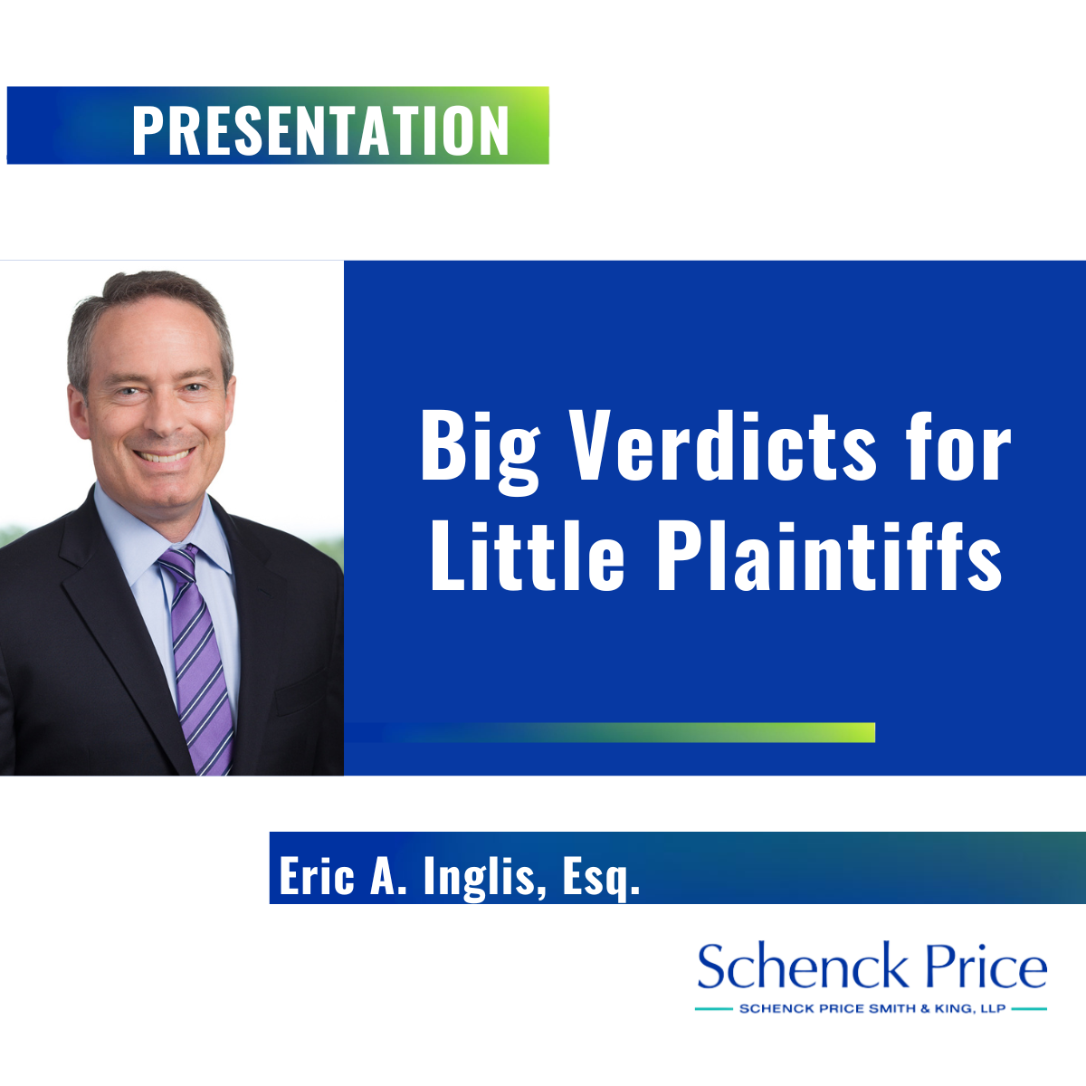 On January 19, 2026, Litigation Department Chair, Eric Inglis, presented a seminar entitled, “Big Verdicts for Little Plaintiffs,” at the Gavel National Conference X, held in Sea Island, Georgia. The seminar, which was presented to claims professionals and defense attorneys from throughout the country, addressed the unique challenges and issues presented when defending substantial personal injury claims brought by infant-plaintiffs.