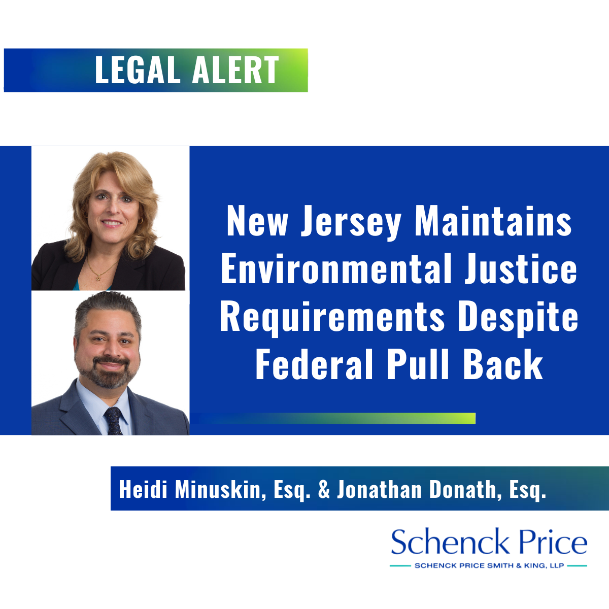 Heidi Minuskin and Jonathan Donath have authored a legal alert regarding New Jersey Environmental Justice requirements.