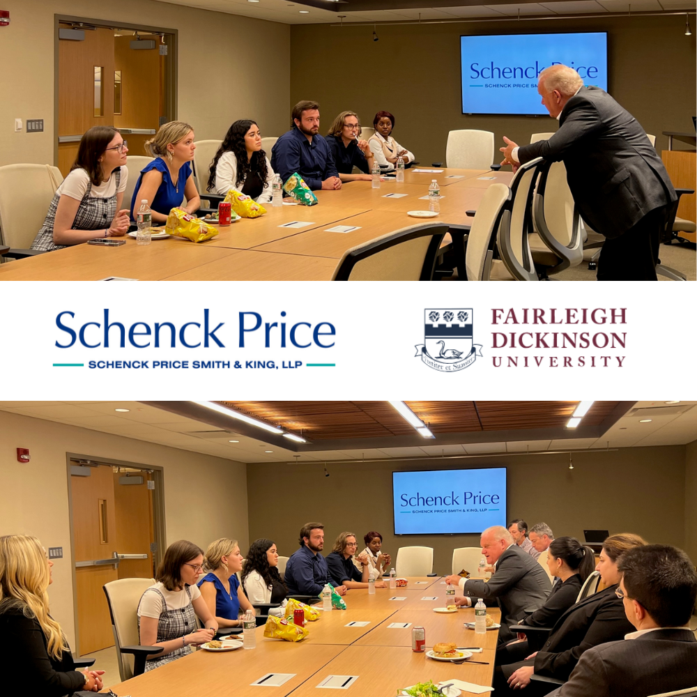 In collaboration with Fairleigh Dickinson University, Schenck Price created its first-ever Pre-Law and Legal Studies Externship in 2020. To welcome our fourth class of externs, Schenck Price attorneys hosted a semester kickoff lunch today and shared insights about their legal careers and life at our firm.