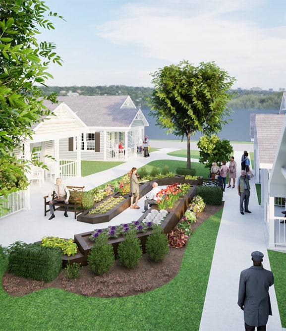 This project is unique in that it uses modular construction to build cottage-style units in pocket neighborhoods intended to encourage social interaction. The community will address the underserved middle-income market by offering rental units with amenities in a central clubhouse, flexible levels of in-home healthcare and additional services, including transportation, social activities, and wellness.